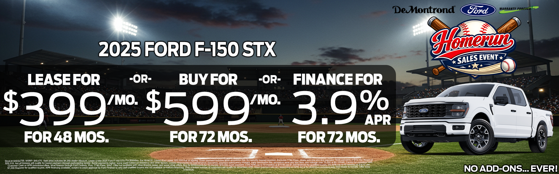 *Credit restrictions may apply. Dealer Discounts available to everyone. Certain other manufacturer offers may not be available to everyone. Pricing includes every available current offer from manufacturer. Ask your dealer for details. All prices on this web site are subject to change without notice. Though we make every effort to provide you the most accurate, up-to-date information, occasionally, one or more vehicles on our web site may be incorrect due to typographical, photographic, occasional human or technical error. We reserve the right to refuse to honor any incorrect Internet prices as we cannot account for the occasional human or technical error. Discounted prices include all available applicable Factory Rebates and Incentives and Dealer Discount. All prices plus Sales Tax, Title, License Fee, and Registration Fee. Please contact dealer for details. Manufacturer's/Distributor's Rebate subject to residency restrictions. Any customer not meeting the residency restriction will receive a dealer discount in the same amount of the manufacturer's/distributor's rebate. If you live in the following California Emissions States of CA, CT, DE, MD, ME, NJ, NY, OR, PA, RI, VT, and WA, please be aware that those states will not title a new vehicle from Texas because the MSO is not listed as being a 50 State/California Emission Vehicle. . Manufacturer’s Rebate subject to residency restrictions. Any customer not meeting the residency restrictions will receive a dealer discount in the same amount of the manufacturer’s rebate. Dealer doc. fee is $150. By requesting information, you agree that DeMontrond (Dealership) and its affiliates, and sales professionals may call/text you about your inquiry, which may involve use of automated means and prerecorded/artificial voices. Message/data rates may apply.