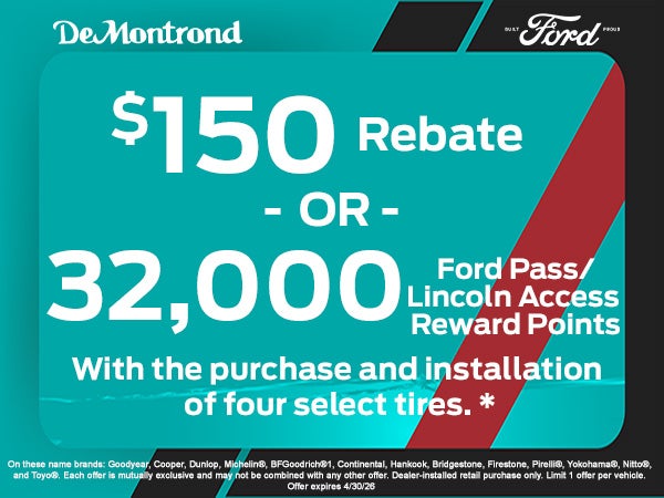 $150 Rebate OR 32,000 Ford Pass/Lincoln Access Reward Points