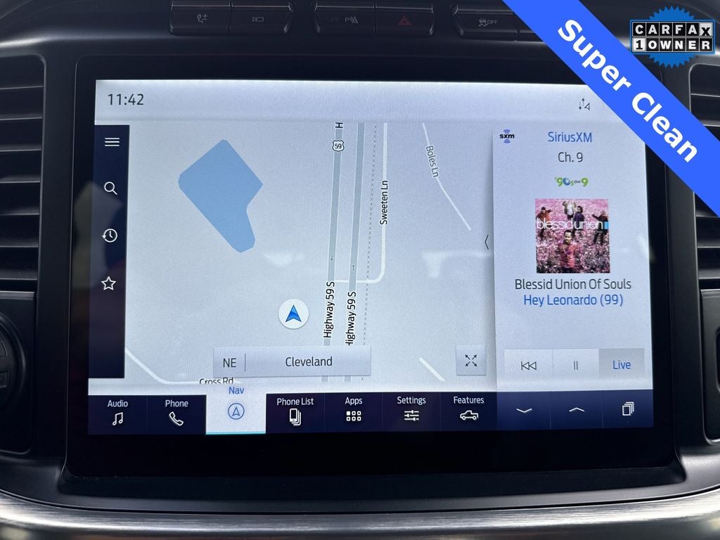 Equipment Group 501A Mid (Radio: B&O Sound System by Bang & Olufsen), Ford Co-Pilot360 Assist 2.0 (Connected Built-In Navigation, Evasive Steering Assist, Intelligent Adaptive Cruise Control w/Stop & Go, Intersection Assist, and Speed Sign Recognition), FX4 Off-Road Package, Lariat Sport Appearance Package (Accent-Color Angular Step Bars, Body-Color Front & Rear Bumpers, Box Side Decals, Chrome Single-Tip Exhaust, Dark 2-Bar & 1 Minor Bar Style Grille, and Wheels: 18 6-Spoke Machined Aluminum), Trailer Tow Package (Class IV Trailer Hitch Receiver, Integrated Trailer Brake Controller, and Pro Trailer Backup Assist), 3.5L PowerBoost Full-Hybrid V6, 4WD, 18 Machined-Aluminum Wheels, 360 Degree Camera, 4-Wheel Disc Brakes, 7 Speakers, ABS brakes, Adjustable pedals, Air Conditioning, Alloy wheels, AM/FM radio: SiriusXM with 360L, Auto High-beam Headlights, Auto-dimming door mirrors, Auto-dimming Rear-View mirror, Automatic temperature control, Brake assist, Bumpers: chrome, Compass, Delay-off headlights, Driver door bin, Driver vanity mirror, Dual front impact airbags, Dual front side impact airbags, Electronic Stability Control, Emergency communication system: SYNC 4 911 Assist, Exterior Parking Camera Rear, Front anti-roll bar, Front Center Armrest w/Storage, Front dual zone A/C, Front fog lights, Front reading lights, Front wheel independent suspension, Fully automatic headlights, Heated door mirrors, Heated front seats, Illuminated entry, Interior Work Surface, Leather-Trimmed 40/20/40 Front Seat, LED Sideview Mirror Spotlights, Low tire pressure warning, Memory seat, Navigation system: Connected Navigation (90-Day Trial), Occupant sensing airbag, Outside temperature display, Overhead airbag, Overhead console, Panic alarm, Passenger door bin, Passenger vanity mirror, Pedal memory, Power door mirrors, Power driver seat, Power passenger seat, Power steering, Power Tailgate, Power windows, Pro Power Onboard - 7.2KW, Radio data system, Radio: AM/FM SiriusXM w/360L, Rear reading lights, Rear seat center armrest, Rear step bumper, Rear window defroster, Remote keyless entry, Security system, Speed control, Speed-sensing steering, Split folding rear seat, Steering wheel mounted audio controls, SYNC 4 w/Enhanced Voice Recognition, Tachometer, Telescoping steering wheel, Tilt steering wheel, Traction control, Tray Style Floor Liner (47W), Trip computer, Turn signal indicator mirrors, Twin Panel Moonroof, Variably intermittent wipers, Ventilated front seats, and Voltmeter.