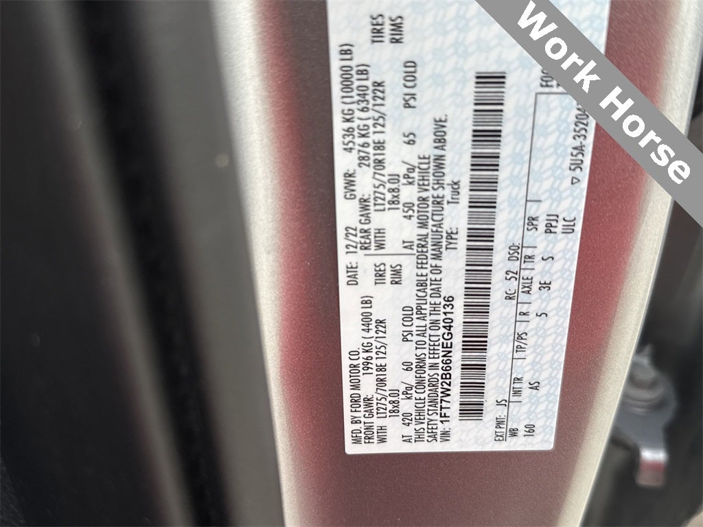 FX4 Off-Road Package (Hill Descent Control, Off-Road Specifically Tuned Shock Absorbers, and Unique FX4 Off-Road Box Decal), GVWR: 10,000 lb Payload Package, Order Code 600A, Power Equipment Group (Advanced Security Pack, Power Front & Rear Seat Windows, Power Locks, Power Tailgate Lock, Remote Keyless Entry, and Trailer Tow Mirrors w/Power Heated Glass), STX Appearance Package (Bright Chrome Grille, Bright Chrome Hub Covers & Center Ornaments, Chrome Front Bumper, Chrome Rear Step Bumper, Steering Wheel-Mounted Cruise Control, and Wheels: 18 Sparkle Silver Painted Cast Aluminum), 4WD, 110V/400W Outlet, 17 Argent Painted Steel Wheels, 4 Speakers, 4-Wheel Disc Brakes, 4G LTE Wi-Fi Hotspot Removal, 6 Angular Bright Polished Step Bar, ABS brakes, Advanced Security Pack Inclination Sensor Removal, Air Conditioning, AM/FM radio, AM/FM Stereo w/MP3 Player, Brake assist, Color-Coordinated Full Carpet w/Floor Mats, Compass, Delay-off headlights, Dual front impact airbags, Dual front side impact airbags, Electronic Stability Control, Emergency communication system: 911 Assist, Exterior Parking Camera Rear, Fixed Rear-Window w/Defrost, Front anti-roll bar, Front Center Armrest w/Storage, Front reading lights, Fully automatic headlights, HD Vinyl 40/20/40 Split Bench Seat, Low tire pressure warning, Outside temperature display, Overhead airbag, Overhead console, Passenger vanity mirror, Power steering, Privacy Glass, Rear reading lights, Rear step bumper, Remote Start System, Split folding rear seat, Steering wheel mounted audio controls, SYNC 3 Communications & Entertainment System, SYNC Communications & Entertainment System, Tachometer, Telescoping steering wheel, Tilt steering wheel, Traction control, Trailer Brake Controller, Trip computer, Upfitter Switches (6), and Variably intermittent wipers.