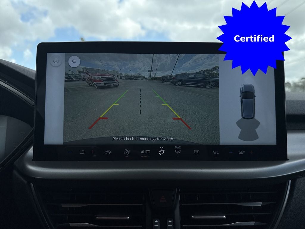 Equipment Group 200A, Tech Pack #1 (Adaptive Cruise Control w/Stop-and-Go, Connected Navigation, Ford Co-Pilot360 Assist+, Rear Parking Sensor, Rear-View Camera, Speed Sign Recognition, and SYNC 4 w/Enhanced Voice Recognition), Ford Gold Certified Certified, 3.81 Axle Ratio, 4-Wheel Disc Brakes, 6 Speakers, ABS brakes, Air Conditioning, Alloy wheels, AM/FM radio: SiriusXM, AM/FM Stereo, Auto High-beam Headlights, Automatic temperature control, Brake assist, Bumpers: body-color, Compass, Delay-off headlights, Driver door bin, Driver vanity mirror, Dual front impact airbags, Dual front side impact airbags, Electronic Stability Control, Emergency communication system: SYNC 4 911 Assist, Exterior Parking Camera Rear, FordPass Connect, Four wheel independent suspension, Front anti-roll bar, Front Bucket Seats, Front Center Armrest, Front dual zone A/C, Front License Plate Bracket, Front reading lights, Fully automatic headlights, Illuminated entry, Knee airbag, Low tire pressure warning, Occupant sensing airbag, Outside temperature display, Overhead airbag, Overhead console, Panic alarm, Passenger door bin, Passenger vanity mirror, Power door mirrors, Power driver seat, Power Liftgate, Power steering, Power windows, Radio data system, Rear anti-roll bar, Rear reading lights, Rear seat center armrest, Rear window defroster, Rear window wiper, Remote keyless entry, Speed control, Speed-sensing steering, Speed-Sensitive Wipers, Split folding rear seat, Spoiler, Steering wheel mounted audio controls, SYNC 4, Tachometer, Telescoping steering wheel, Tilt steering wheel, Traction control, Trip computer, Unique Cloth Front Bucket Seats, Variably intermittent wipers, and Wheels: 17 Shadow Silver-Painted Aluminum.