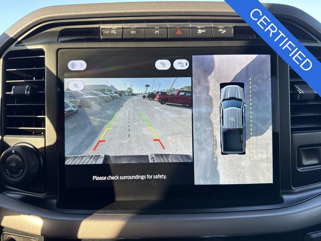 Equipment Group 302A Mid, FX4 Off-Road Package (Tray Style Floor Liner), Tow/Haul Package (Integrated Trailer Brake Controller), Ford Gold Certified Certified, 4WD, 4-Wheel Disc Brakes, 6 Speakers, ABS brakes, Air Conditioning, Alloy wheels, AM/FM radio: SiriusXM with 360L, Auto High-beam Headlights, Auto-dimming Rear-View mirror, Automatic temperature control, Brake assist, Bumpers: chrome, Chrome wheels, Cloth 40/20/40 Front Seat, Compass, Delay-off headlights, Driver door bin, Driver vanity mirror, Dual front impact airbags, Dual front side impact airbags, Electronic Stability Control, Emergency communication system: SYNC 4 911 Assist, Front anti-roll bar, Front Center Armrest w/Storage, Front dual zone A/C, Front fog lights, Front reading lights, Front wheel independent suspension, Fully automatic headlights, Heated door mirrors, Illuminated entry, LED Sideview Mirror Spotlights, Low tire pressure warning, Navigation system: Connected Navigation, Occupant sensing airbag, Outside temperature display, Overhead airbag, Overhead console, Panic alarm, Passenger door bin, Passenger vanity mirror, Power door mirrors, Power driver seat, Power steering, Power windows, Radio data system, Radio: AM/FM SiriusXM w/360L, Rear reading lights, Rear step bumper, Rear window defroster, Remote keyless entry, Security system, Speed control, Split folding rear seat, Steering wheel mounted audio controls, SYNC 4 w/Enhanced Voice Recognition, Tachometer, Telescoping steering wheel, Tilt steering wheel, Traction control, Trip computer, Variably intermittent wipers, Voltmeter, and Wheels: 18 Chrome-Like PVD.