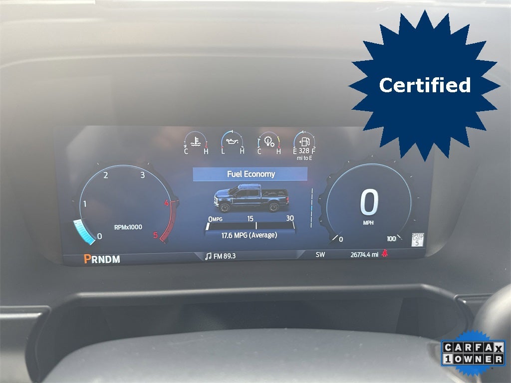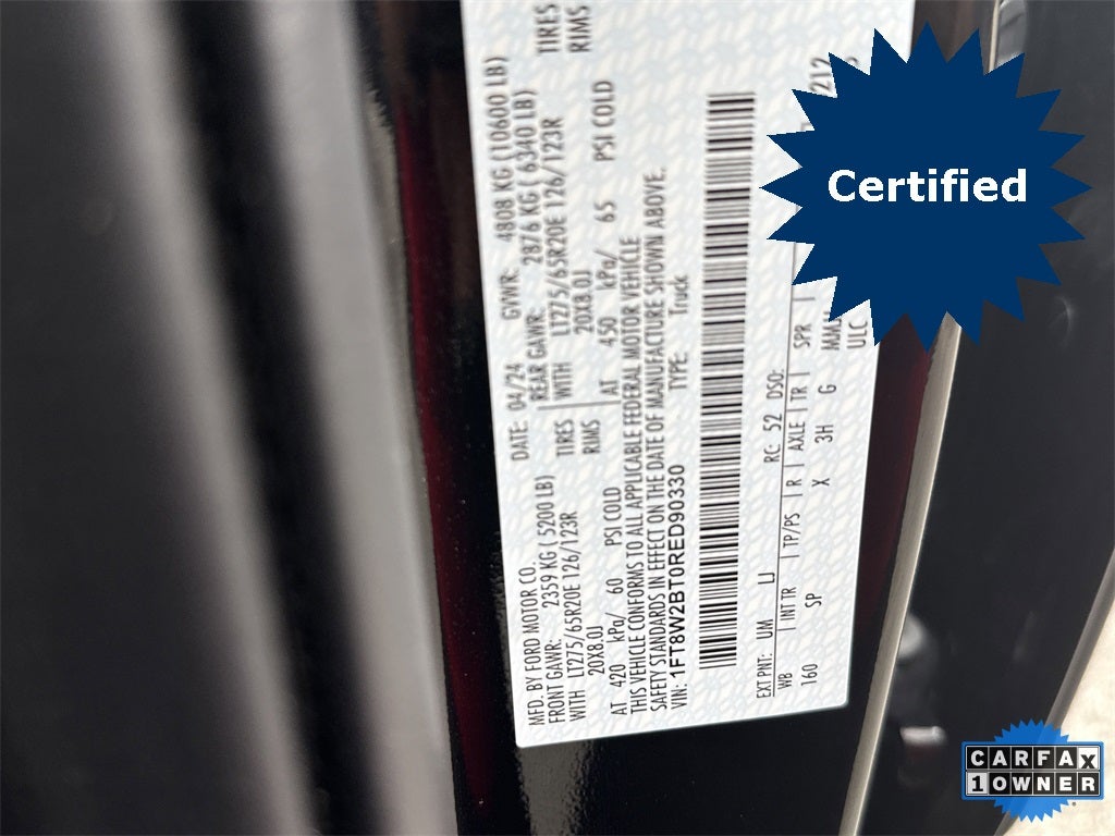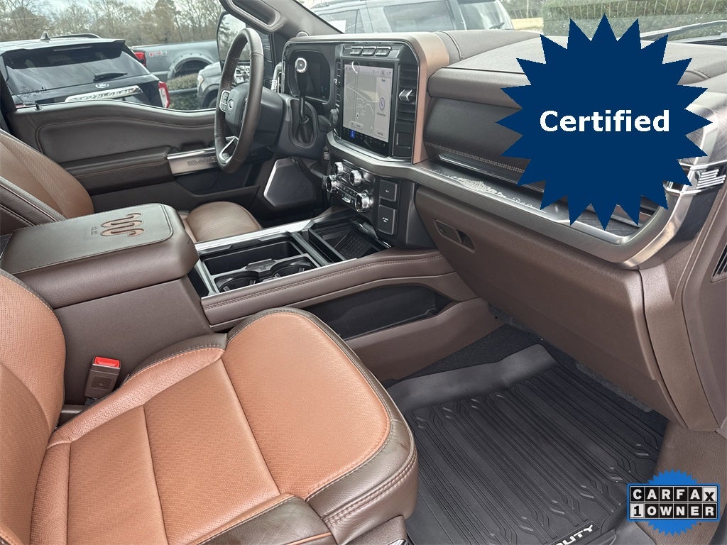 F-250 >10K GVWR Package, FX4 Off-Road Package (Hill Descent Control, Off-Road Specifically Tuned Shock Absorbers, and Unique FX4 Off-Road Box Decal), Ford Gold Certified Certified, 4WD, Adjustable pedals, Air Conditioning, AM/FM radio: SiriusXM with 360L, Auto tilt-away steering wheel, Auto-dimming Rear-View mirror, Automatic temperature control, Compass, Driver door bin, Driver vanity mirror, Front dual zone A/C, Memory seat, Navigation system: Connected Navigation (includes complimentary 1-year trial), Pedal memory, Power door mirrors, Power driver seat, Power steering, Power windows, Radio: B&O Unleashed Sound System by Bang & Olufsen, Rear step bumper, Remote keyless entry, SiriusXM Radio w/360L, Steering wheel memory, SYNC 4 w/Enhanced Voice Recognition, Turn signal indicator mirrors, 4-Wheel Disc Brakes, ABS brakes, Alloy wheels, Auto High-beam Headlights, Brake assist, Delay-off headlights, Dual front impact airbags, Dual front side impact airbags, Electronic Stability Control, Emergency communication system: SYNC 4 911 Assist, Exterior Parking Camera Rear, Flow-Through Console, Front anti-roll bar, Front Bucket Seats, Front Center Armrest, Front fog lights, Front reading lights, Fully automatic headlights, Garage door transmitter, Heated door mirrors, Heated front seats, Heated rear seats, Heated steering wheel, Illuminated entry, Leather steering wheel, Low tire pressure warning, Outside temperature display, Overhead airbag, Overhead console, Panic alarm, Passenger door bin, Passenger vanity mirror, Power passenger seat, Rain sensing wipers, Rear reading lights, Rear seat center armrest, Rear window defroster, Security system, Speed control, Split folding rear seat, Steering wheel mounted audio controls, Tachometer, Telescoping steering wheel, Tilt steering wheel, Tough Bed Spray-In Bedliner, Traction control, Trip computer, Variably intermittent wipers, and Ventilated front seats.