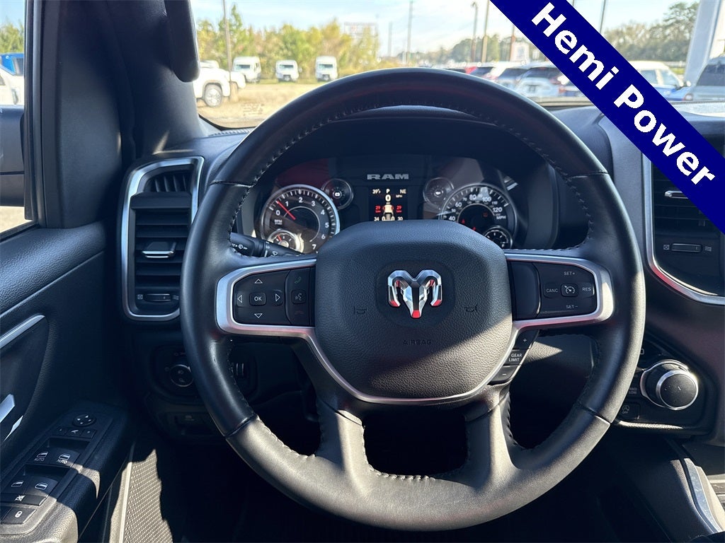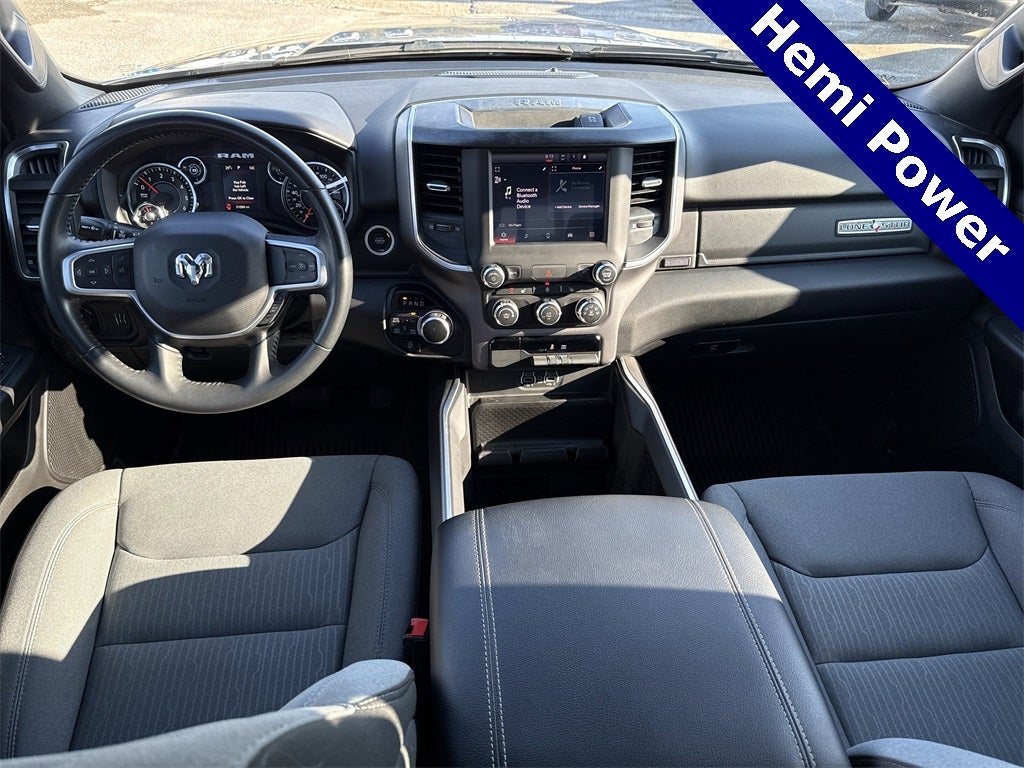 Big Horn Level 1 Equipment Group (2nd Row In Floor Storage Bins, 4G LTE Wi-Fi Hot Spot, Apple CarPlay, Auto-Dimming Exterior Driver Mirror, Auto-Dimming Rear-View Mirror, Black Premium Power Mirrors, Bluetooth® Handsfree Phone & Audio, Class IV Receiver Hitch, Connectivity - US/Canada, Convex Wide-Angle Exterior Mirror Insert, Electric Shift-On-Demand Transfer Case, Exterior Mirrors Courtesy Lamps, Exterior Mirrors w/Heating Element, Exterior Mirrors w/Supplemental Signals, For Details, Visit DriveUconnect.com, For More Info, Call 800-643-2112, Front Fog Lamps, Global Telematics Box Module (TBM), Glove Box Lamp, Google Android Auto, Heated Front Seats, Heated Steering Wheel, Passenger Sun Visor w/Illuminated Mirror, Power-Folding Mirrors, Radio: Uconnect 5 W w/8.4 Display, Rear Dome w/On/Off Switch Lamp, Rear Power Sliding Window, Rear Window Defroster, SiriusXM Radio Service, SiriusXM Satellite Radio, and USB Host Flip), Quick Order Package 27R Lone Star (Regional) (Lone Star Badge), 3 Rear Seat Head Restraints, 3.21 Rear Axle Ratio, 4 Way Front Headrests, 4-Wheel Disc Brakes, 48V Belt Starter Generator, 6 Speakers, ABS brakes, Air Conditioning, Alloy wheels, AM/FM radio, Brake assist, Bumpers: chrome, Cloth Bench Seat, Compass, Delay-off headlights, Driver door bin, Dual front impact airbags, Dual front side impact airbags, Electronic Stability Control, Emergency communication system: RAM Connect, Front anti-roll bar, Front Center Armrest w/Storage, Front License Plate Bracket, Front reading lights, Front Seat Back Map Pockets, Front wheel independent suspension, Fully automatic headlights, Heated door mirrors, Illuminated entry, Integrated Voice Command w/Bluetooth®, Leather steering wheel, Low tire pressure warning, MOPAR Front & Rear Rubber Floor Mats, Occupant sensing airbag, Outside temperature display, Overhead airbag, Overhead console, Panic alarm, ParkView Rear Back-Up Camera, Passenger door bin, Passenger vanity mirror, Power door mirrors, Power steering, Power windows, Radio data system, Radio: Uconnect 3 w/5 Display, RAM Grille Badge - Chrome, Rear 60/40 Folding Seat, Rear anti-roll bar, Rear seat center armrest, Rear step bumper, Remote keyless entry, Remote Start System, Speed control, Split folding rear seat, Steering wheel mounted audio controls, Tachometer, Telescoping steering wheel, Tilt steering wheel, Traction control, Trip computer, Variably intermittent wipers, Voltmeter, and Wheels: 18 x 8 Cast-Aluminum PainteD.